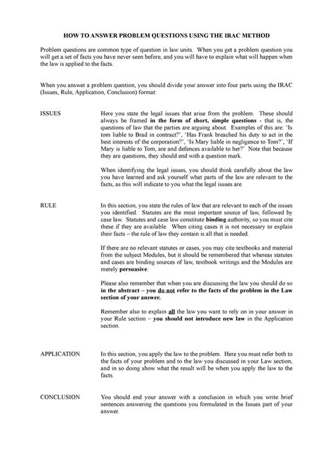 Download PROBLEM QUESTION IRAC SAMPLE ANSWER Doc Gutenberg